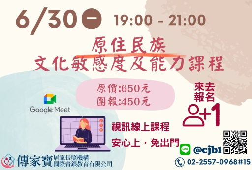 長照專業課程12/20 巴金森氏症居家復能及照顧最低開課人數 : 15限額 50 名報名截止日:2025/12/18長照專業課程12/21 原住民、感控、性別、消防、緊急(長照人員必修五合一課程)最低開課人數 : 15限額 80 名報名截止日:2025/12/18長照專業課程12/27 <安寧系列>靈性關懷課程最低開課人數 : 15限額 50 名報名截止日:2025/12/25長照專業課程12/28 樂齡全方位健康促進課程設計與實務應用最低開課人數 : 15限額 50 名報名截止日:2025/12/25長照專業課程12/29 原住民族文化敏感度及能力課程(線上同步課程)最低開課人數 : 15限額 200 名報名截止日:2025/12/26長照專業課程1/3 原住民、感控、消防、緊急、性別課程(長照人員必修五合一課程)(線上同步課程)最低開課人數 : 15限額 200 名報名截止日:2026/01/01長照專業課程1/3、4 失智症照顧服務20小時訓練課程最低開課人數 : 15限額 50 名報名截止日:2026/01/01長照專業課程1/10、11 身心障礙支持服務核心課程最低開課人數 : 15限額 50 名報名截止日:2026/01/08長照專業課程1/17 <藝術輔療系列>筆動人心‧繪出樂齡藝世界最低開課人數 : 15限額 50 名報名截止日:2026/01/15長照專業課程1/18 異常(緊急)事件防治(線上同步+實體課程)最低開課人數 : 15限額 80 名報名截止日:2026/01/15長照專業課程1/18 居家安全及感染控制(線上同步+實體課程)最低開課人數 : 15限額 80 名報名截止日:2026/01/15長照專業課程1/24 原住民族與多元族群文化敏感度及能力(線上同步課程)最低開課人數 : 15限額 200 名報名截止日:2026/01/22長照專業課程1/25 肌不可失~預防肌少症的飲食及運動最低開課人數 : 15限額 50 名報名截止日:2026/01/22長照專業課程1/31 小班制-活用ChatGPT生成年度業務計畫實戰班最低開課人數 : 7限額 10 名報名截止日:2026/01/29長照專業課程2/7 原住民族與多元族群文化敏感度及能力最低開課人數 : 15限額 80 名報名截止日:2026/02/05長照專業課程2/7 精準擺位與機能支持:安全省力轉移位實戰班最低開課人數 : 15限額 50 名報名截止日:2026/02/05
