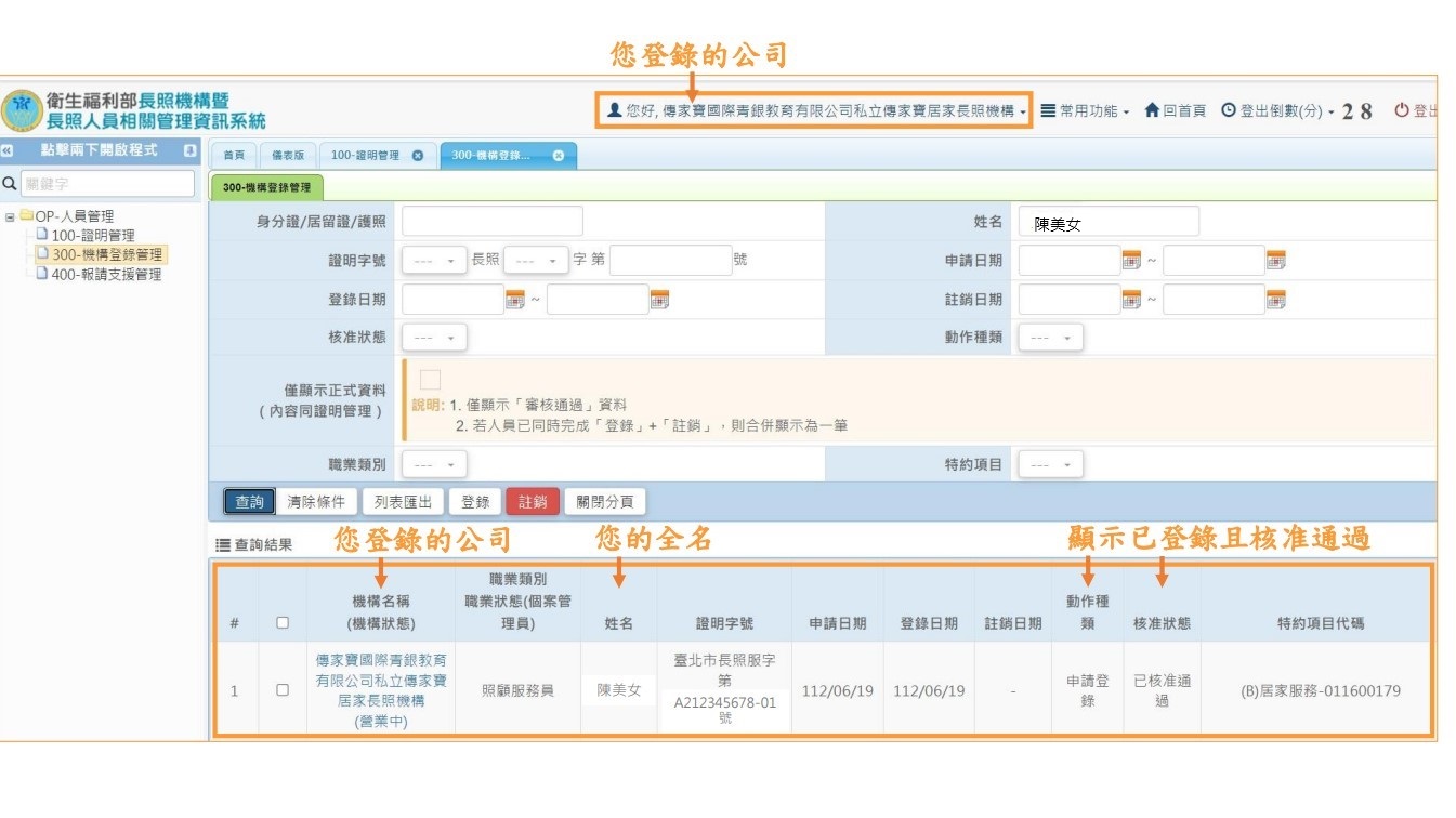 報名前請務必確認是否已開始於長照機構服務,並完成登錄(參下圖),上完課程才能認列完成指定訓練噢